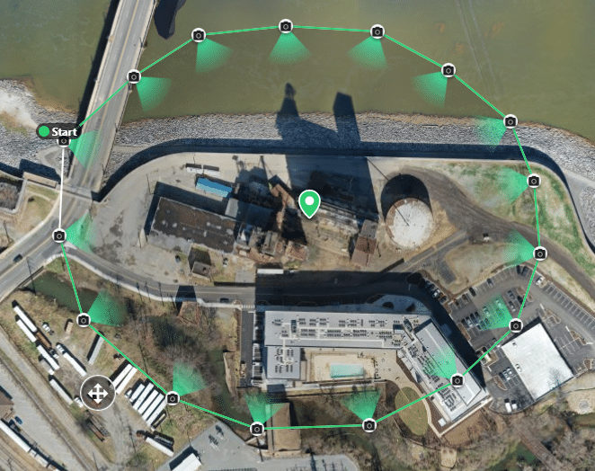 An example of site mapping and the path the drone takes to capture construction progress over time.