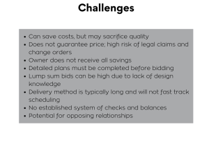 In this delivery method you are requesting the contractors to provide you with a lump sum price to build your project, and the price based on the plans and specs you have provided. In its simplest definition, the contractor will be responsible only for what is defined by these documents. In this bid scenario you are selecting the contractor with the lowest price to perform the work.