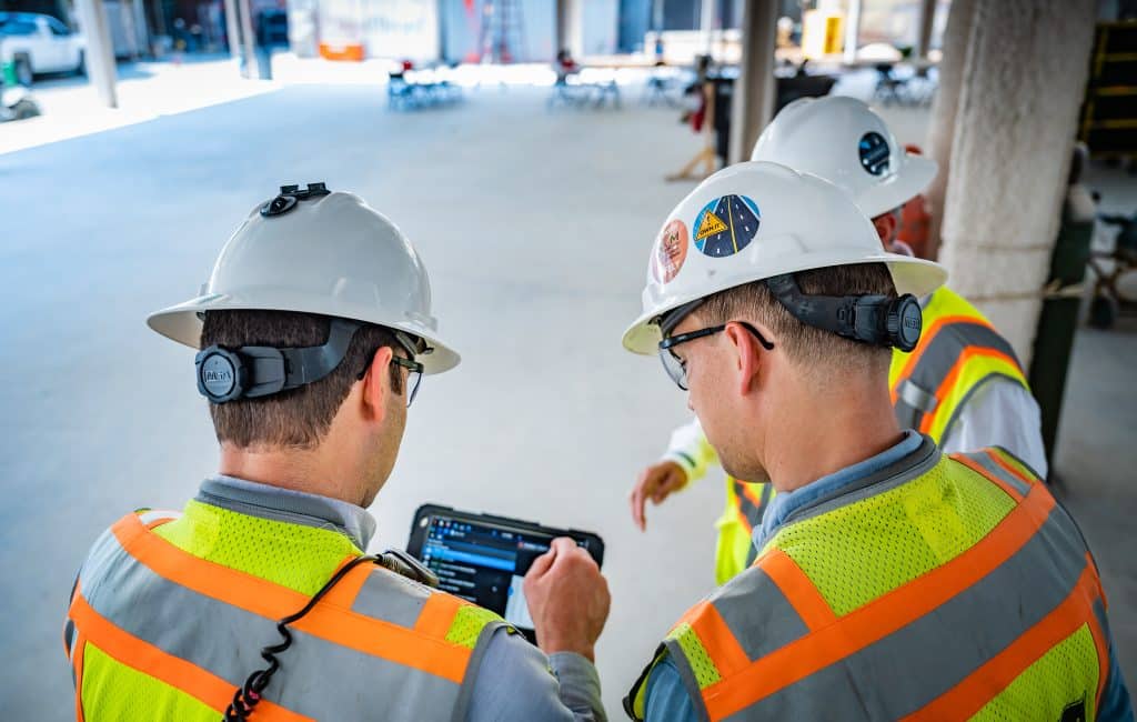 Construction team documenting existing conditions and scheduling repairs.